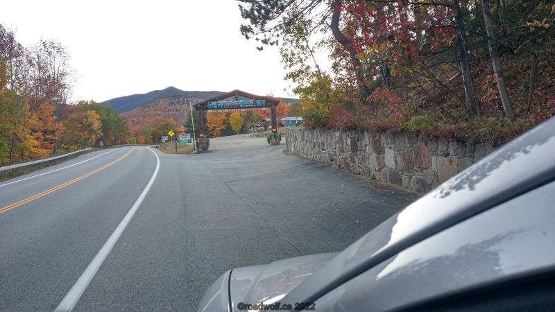 At the Wild Center we discovered that we could drive up Whiteface Mountain! Of course, we didn't discover that it was a toll road and only open at specific times. I plotted a course, and away we went, with the idea that it was a road we could just drive up. Upon getting there, it was 5:50 or so. It was a toll road with a gatehouse, and apparently the road was only opened from Spring till Fall, and of course after Columbus day, it was going to be shut down for the season. We stopped by the North Pole for a picture.