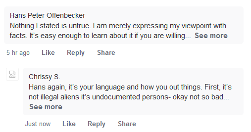 The post gathered a few comments, one of which was talking about illegal aliens. I wasn't following the post at all, as I was away from the computer much of the weekend, but I did get a grasp of what was being said from the email notifications of replies. I shall show you some of the replies which were applicable: